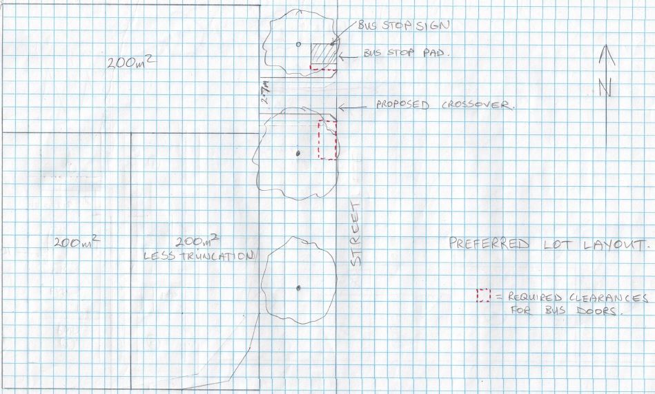 was constrained by a bus stop. We took site measurements, drew up the below plan and submitted it to both our planner and traffic